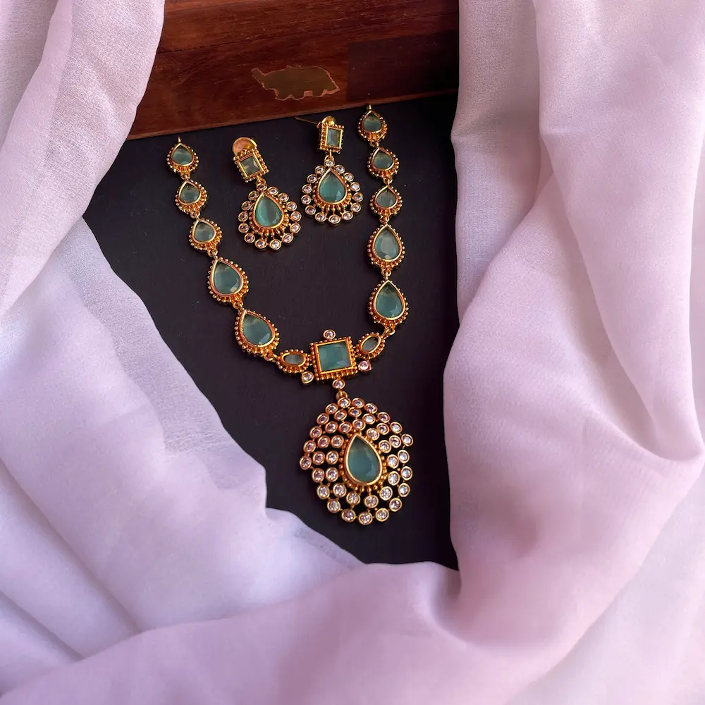 Jyothika Inspired Neckset (Version 3) (Mint Green)